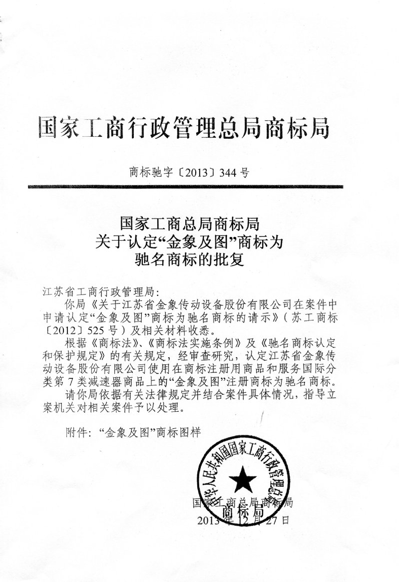 金象品牌獲得中國馳名商標、江蘇省著名商標、江蘇省名牌產(chǎn)品等稱號。公司先后獲得國家火炬計劃高新技術企業(yè)、江蘇省高新技術企業(yè)、江蘇省創(chuàng)新型企業(yè)等稱號。