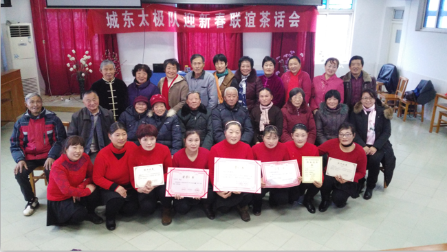 聯(lián)誼會(huì)上,太極隊(duì)隊(duì)長(zhǎng)胡建軍發(fā)言說(shuō):“城東太極隊(duì)在過(guò)去的一年里,多次參加射陽(yáng)縣舉辦的各項(xiàng)中老年人的活動(dòng),并屢次獲獎(jiǎng)。希望大家在新的一年里,繼續(xù)發(fā)揚(yáng)團(tuán)結(jié)友愛的精神,齊健身、同歡樂(lè)。”