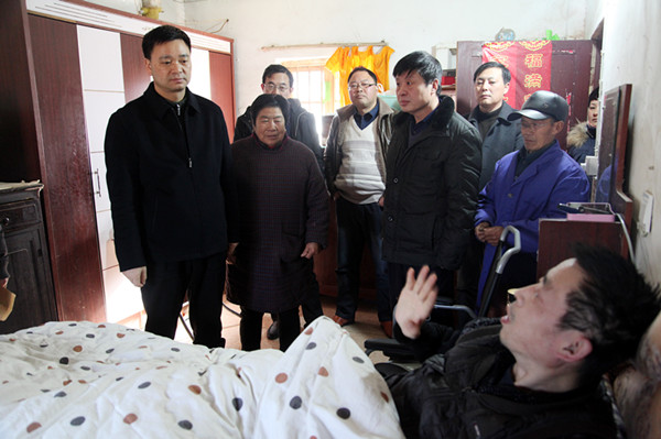 姜建友一行首先代表集團(tuán)公司黨委向農(nóng)場領(lǐng)導(dǎo)班子及廣大干部職工表示新春的問候和良好的祝愿。還在幾位場領(lǐng)導(dǎo)及相關(guān)部門和單位負(fù)責(zé)人的陪同下,重點走訪慰問了兩個貧困家庭,向他們送上了慰問金、慰問品特別是集團(tuán)公司和各級的溫情關(guān)愛和溫馨祝福。在孫謝居委會單身兄弟家庭范小八家,姜建友一行仔細(xì)察看并詢問了他家的生活、兄弟倆的身體及農(nóng)場采取的精準(zhǔn)幫扶措施落實等方面的情況,同時還針對白馬湖困難群體較多的實際,要求農(nóng)場各級領(lǐng)導(dǎo)在精準(zhǔn)幫扶上再出實招、再作努力,希望兄弟倆也要自強(qiáng)自立,早日過上美好生活。在六支居委會因病致盲的居民卞元翠家,姜建友一行熱心地與她拉起了家常,詳細(xì)詢問了她的身體情況和家庭生活情況,鼓勵她家要進(jìn)一步樹立起生活的信心,在各級組織的關(guān)愛幫助下,早日戰(zhàn)勝病魔和目前的困難。(張志成)