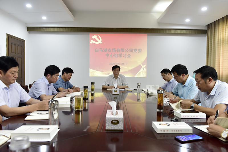 9月21日上午,白馬湖農場公司黨委中心組舉行第十次集中學習會,認真學習《習近平治國理政》第三卷第一專題、第二專題相關篇章并交流研討心得體會,及時傳達集團公司黨建工作推進會和產業發展推進會精神。黨委書記姚春華主持學習會,中心組全體成員參加學習會。