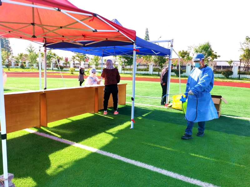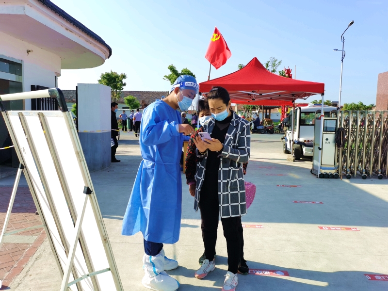 我在崗,您省心。“能做一點是一點,疫情防控是我們大家共同的事。”姜明亮是社區(qū)機關(guān)黨支部一名預(yù)備黨員,當(dāng)他得知5月3日夜班值班人員臨時有事便主動請纓,從晚上八點到次日早晨八點,他把承諾當(dāng)做責(zé)任來踐行。5月4日農(nóng)場組織全員核酸檢測,他一掃夜班值守的疲憊,直奔迎湖健身廣場核酸采樣點,背上消毒機進(jìn)行現(xiàn)場環(huán)境消殺。劉圩小學(xué)采樣點,只見一位“小藍(lán)”手拿擴音喇叭對著居民喊話:“病毒無情人有情,健康連著你我他,請大家保持一米線。”經(jīng)過仔細(xì)辨認(rèn)大家才認(rèn)出她是社區(qū)財務(wù)劉玉。“平時聲音不大,維持秩序時聲音倒不小。”大家紛紛為她點贊。“您好,請出示身份信息。”三分場工作人員劉昕身穿白色防護(hù)服,正忙著采集身份信息。朝陽下,汗水浸透了衣衫、曬紅了臉頰,他卻沒有一聲抱怨。當(dāng)天他共采集490個信息,這也是他連續(xù)五次完成三分場采集點數(shù)據(jù)采集任務(wù)。