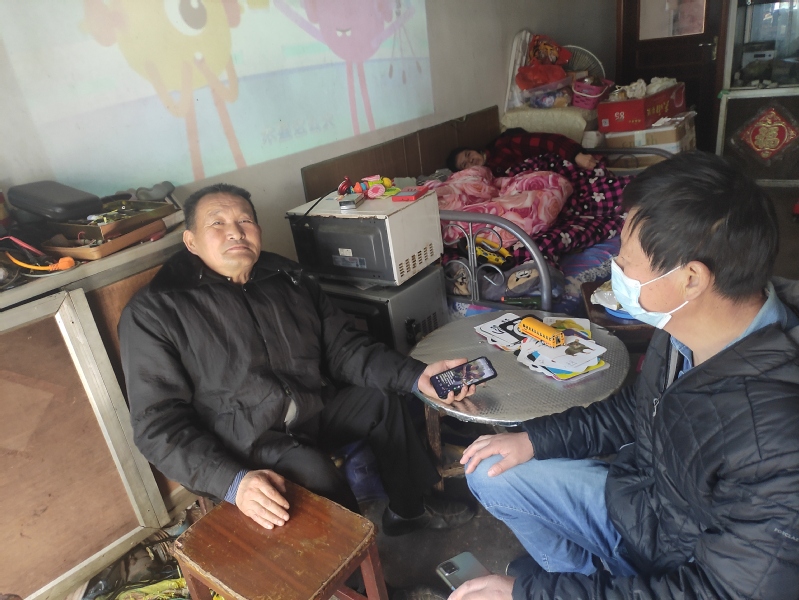 全面落實,重點開展。經梳理匯總,農場社區特殊困難群體入戶排查工作于4月中旬全面展開,排查小組成員秉承實事求是、見人見面的原則,對照名單,對全場已納入保障和未納入保障的群眾展開調查。由于正值疫情嚴峻時期,針對無法入戶調查的困難群體,排查小組成員采用電話、視頻的方式進行交談。在排查小組的共同努力下,對97戶困難群眾開展了針對性排查。在排查過程中實際入戶49戶,視頻通話45戶,電話咨詢3戶,共計填寫入戶調查表109份。截止目前,淮海農場特殊困難群體救助排查行動已圓滿完成。圖為入戶調查時的鏡頭。
