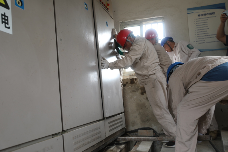 7月5日上午6點(diǎn)10分。“楊隊(duì)啊,8隊(duì)南電站不工作了!”接報(bào)后,凱惠電力寶應(yīng)湖分公司負(fù)責(zé)人楊加春立即組織3名電工趕到現(xiàn)場。經(jīng)排查,是電站開關(guān)柜壞了。落實(shí)開關(guān)柜、組織材料,他們兵分兩路共同推進(jìn)。十余個(gè)電話打過后,趙愛華終于在農(nóng)機(jī)庫找到一臺(tái)型號(hào)匹配的開關(guān)柜。8點(diǎn)趙愛華等將登高工具、絕緣棒、電纜等材料運(yùn)到電站。電工邵榮祥戴上安全帽,用絕緣棒將三相開關(guān)斷開,率先爬上高壓電桿,又和電工趙愛華、劉福相一起將壞電柜上的控制開關(guān)線一一拆除。不足9平方的泵房里,悶熱狹小,壓得人透不氣來,地處田間雜草叢中,蚊蟲直撞人臉,他們?nèi)徊活櫍裢度霌屝蓿?/span>不一會(huì)兒就大汗淋漓。拆除后,他們又與8隊(duì)工人一起把新柜抬進(jìn)泵房。200多斤開關(guān)柜死沉死沉,狹小的空間嚴(yán)重限制作業(yè),一不小心趙愛華的手肘撞在了電柜上,一陣鉆心得痛。終于把柜子擺到合適位置,接線、拉電纜,電工們立即展開。11點(diǎn),邵榮祥再次爬上高壓電桿,推上開關(guān),啟動(dòng)控制,電站發(fā)出隆隆的歡唱。此時(shí),溫度計(jì)顯示的室外溫度達(dá)到了43攝氏度,電工們已全身濕透。