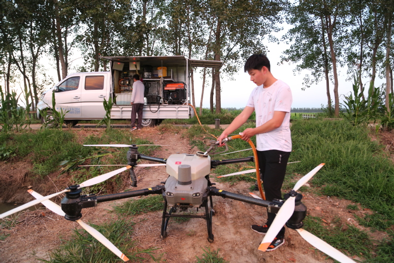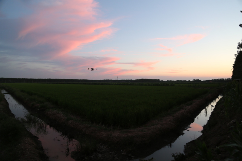 眼下正是水稻產(chǎn)量形成的關(guān)鍵時(shí)期,也是病蟲(chóng)害高發(fā)時(shí)期。連日來(lái),崗埠分公司組織農(nóng)業(yè)科、生產(chǎn)區(qū)農(nóng)技人員和大隊(duì)管理員,著眼紋枯病、稻曲病、稻縱卷葉螟、稻飛虱等高發(fā)病蟲(chóng)害,深入田間展開(kāi)排查統(tǒng)計(jì),分類施策,科學(xué)開(kāi)展肥水管理和綠色防控,抓好4.5萬(wàn)畝水稻的穗期管理工作?!盁o(wú)人機(jī)夜間對(duì)水稻進(jìn)行病蟲(chóng)害綜合防治作業(yè),避開(kāi)白天高溫作業(yè)風(fēng)險(xiǎn),大大提升作業(yè)效率,一臺(tái)無(wú)人機(jī)每小時(shí)可噴灑150畝,有力加速防治進(jìn)程?!睄彶悍止巨r(nóng)業(yè)中心負(fù)責(zé)人表示,無(wú)人機(jī)飛防不僅作業(yè)效率快,防治效果好,減少農(nóng)藥使用量,降低農(nóng)業(yè)生產(chǎn)成本,且能大大降低勞動(dòng)強(qiáng)度,一舉多得。當(dāng)前正是穗期水稻病蟲(chóng)害綜合防治關(guān)鍵節(jié)點(diǎn),分公司共組織無(wú)人機(jī)40余臺(tái),采取夜間操作,確保在規(guī)定防治時(shí)間內(nèi)完成防治任務(wù),為秋糧豐收打好基礎(chǔ)。