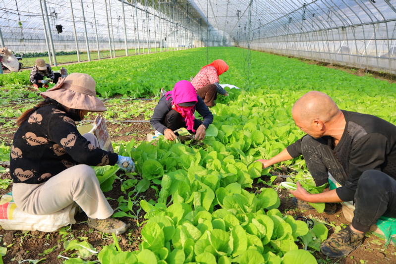 10月23日,江蘇省連云港市海州區(qū)的江蘇農(nóng)墾崗埠農(nóng)場,訂單蔬菜喜獲豐收。菜農(nóng)們在大棚里采收整理新鮮的蔬菜,并進行打包稱重,田間地頭一片繁忙景象。近年來,當(dāng)?shù)卮罅Πl(fā)展規(guī)模化大棚蔬菜種植,采取“市場+訂單+農(nóng)戶”的方式,促進菜農(nóng)增收。