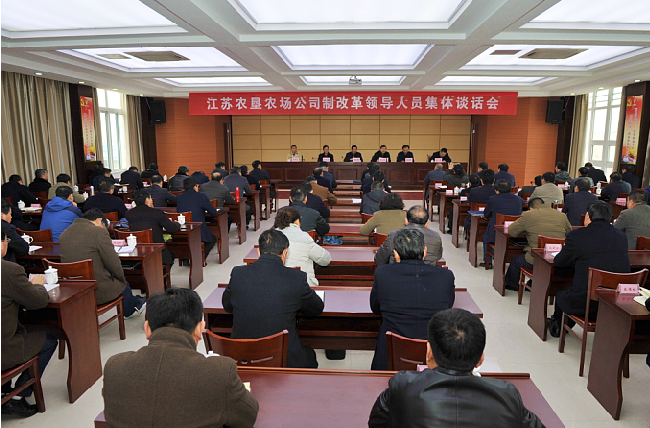 3月20日下午,江蘇農墾農場公司制改革領導人員集體談話會在淮海農場舉行。集團公司總經理胡兆輝出席會議。集團公司黨委委員、總經理助理楊義林主持會議?! ?,胡兆輝闡述了公司制改革的重要性、必要性和