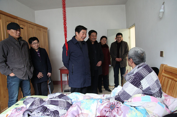 2月9日,集團公司黨委書記、董事長魏紅軍,工會主席佟曉廷一行赴海安農場,慰問困難職工,把集團公司黨委的關懷送到困難職工家中。  魏書記一行首先來到抗美援朝老戰士、農場退休工人仲兆來老人家。當得知老