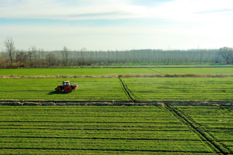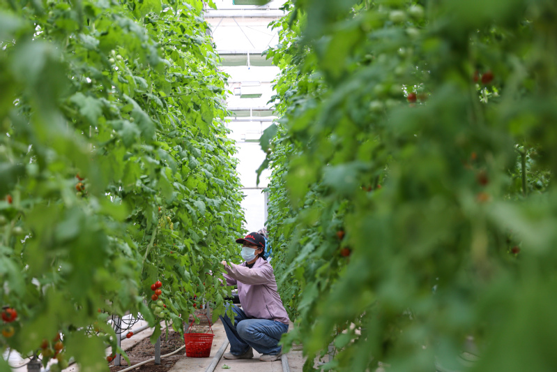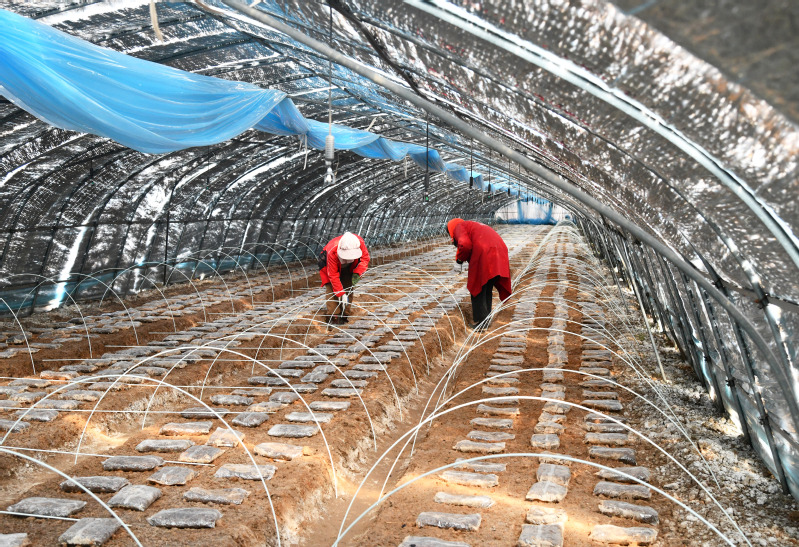 隨著氣溫逐漸升高,為保障羊肚菌正常生長發育,2月10日上午,淮海產業發展中心大棚基地工作人員,積極抓住羊肚菌原基萌發這一關鍵節點,有條不紊地進行揭膜、搭小棚等催菇前的準備工作。“今天是我們第一批羊肚菌播種后的第73天,目前有11個種植大棚內的羊肚菌菌霜已經完全消退,且出現了大量的原基,說明這批羊肚菌的菌絲已經達到成熟,進入下一個發育階段。”羊肚菌種植技術員袁亞洲介紹說,“羊肚菌原基的形成是羊肚菌生長過程中的一個重要環節,因此我們要及時揭開覆蓋在畦面上的地膜,保證原基獲取適宜的生長環境,確保原基能夠茁壯生長。?”羊肚菌大棚內,90多米長的畦面上,斷斷續續鋪滿了米粒大小的白色菌菇。技術員李博正拿著手機,在揭開地膜后的大棚內來回穿梭,不時蹲下身子仔細查看羊肚菌原基的長勢,以及對營養袋中營養物質的吸收情況?!把蚨蔷z扭結成球,形成晶瑩透明的米粒狀結構,就是羊肚菌的原基。因為十分微小,所以我都拿手機相機放大來看。”李博介紹說,“我們有好幾個種植大棚都出現了一兩個羊肚菌幼菇,也就是所謂的‘信號菇’,說明羊肚菌發育狀況良好,看來今年我們羊肚菌的產量前景不錯哩。?”為了達到增溫保濕的效果,基地的工作