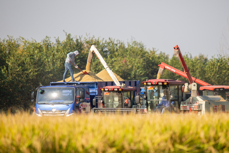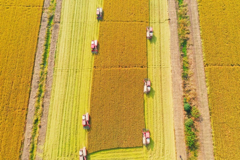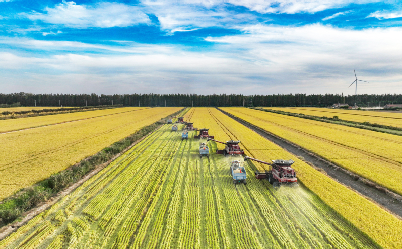 豐收時(shí)節(jié)碩果飄香,黃澄澄的稻谷鋪滿大地,紅彤彤的高粱俏立枝頭,穗粒飽滿,猶如紅火的云霞……豐收碩果驚艷了黃海大地,悄然繪就多彩豐收圖。10月24日,江蘇農(nóng)墾黃海農(nóng)場11萬畝水稻迎來豐收。現(xiàn)場收割機(jī)的隆隆轟鳴,糧食運(yùn)輸車輛來回穿梭,確保水稻應(yīng)收盡收、機(jī)收減損、顆粒歸倉。據(jù)了解,黃海水稻收割機(jī)械近200臺在田作業(yè),收割機(jī)械化率達(dá)100%。黃海大面積水稻收獲峰期將在本月末前后,預(yù)計(jì)經(jīng)一周努力,水稻即可收獲告罄。黃海將以“搶”字為先,抓住有利天氣,及時(shí)進(jìn)行晾曬和儲存,保障糧食安全。進(jìn)一步優(yōu)化生產(chǎn)布局,推動(dòng)秋種生產(chǎn)順利進(jìn)行,推進(jìn)農(nóng)業(yè)生產(chǎn)結(jié)構(gòu)優(yōu)化和調(diào)整,夯實(shí)明年夏糧豐產(chǎn)豐收基礎(chǔ)。火紅,也是豐收的顏色。在外拓基地,8400畝酒用高粱進(jìn)入全面收割階段,一輛輛高粱收割一體機(jī)轟鳴著來回穿梭,一株株穗大粒密的高粱被收割機(jī)納入后吐出,粉碎后的秸稈撒在地里,留下粒粒飽滿的果實(shí),形成了一幅美麗的豐收畫卷。自江蘇農(nóng)墾(蘇墾農(nóng)發(fā))與蘇酒集團(tuán)(洋河股份)共同推進(jìn)綠色原糧基地建設(shè)戰(zhàn)略合作協(xié)議簽訂以來,宿遷分公司充分發(fā)揮區(qū)位優(yōu)勢,奏響農(nóng)墾“示范區(qū)、國家隊(duì)”主旋律,開始逐步推進(jìn)高粱規(guī)模化種植,達(dá)到穩(wěn)產(chǎn)增收的同時(shí)能夠進(jìn)一步調(diào)節(jié)
